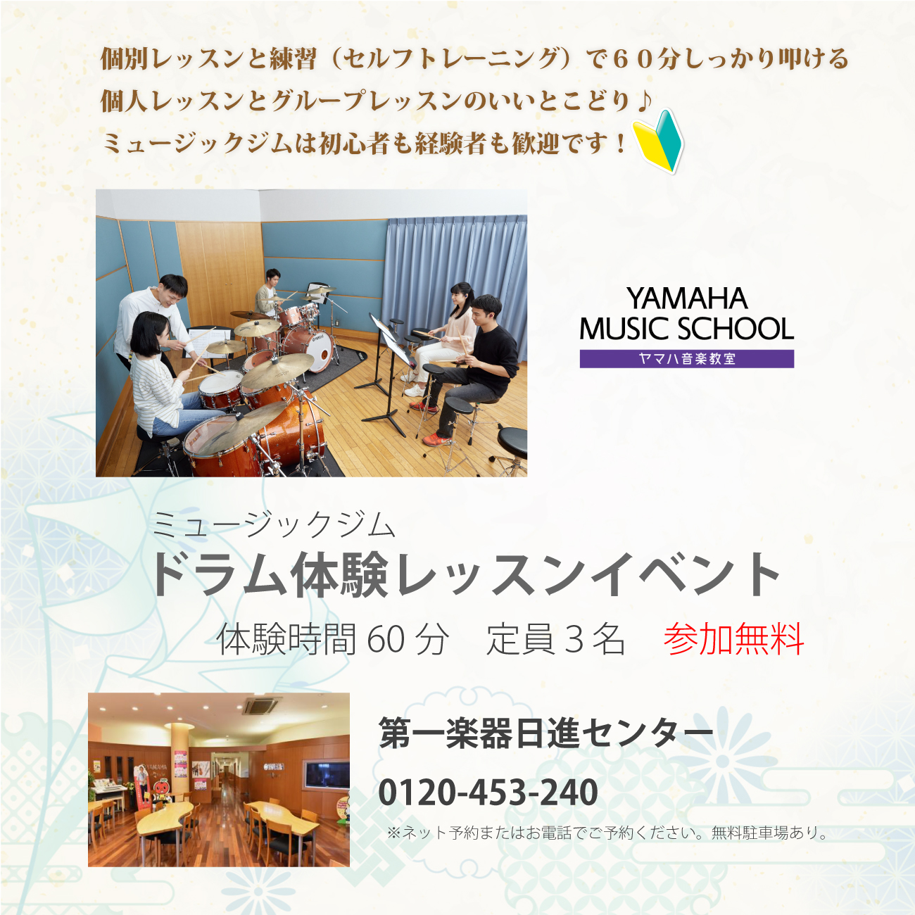 電子ドラムが設置されたレッスンルームを開放!