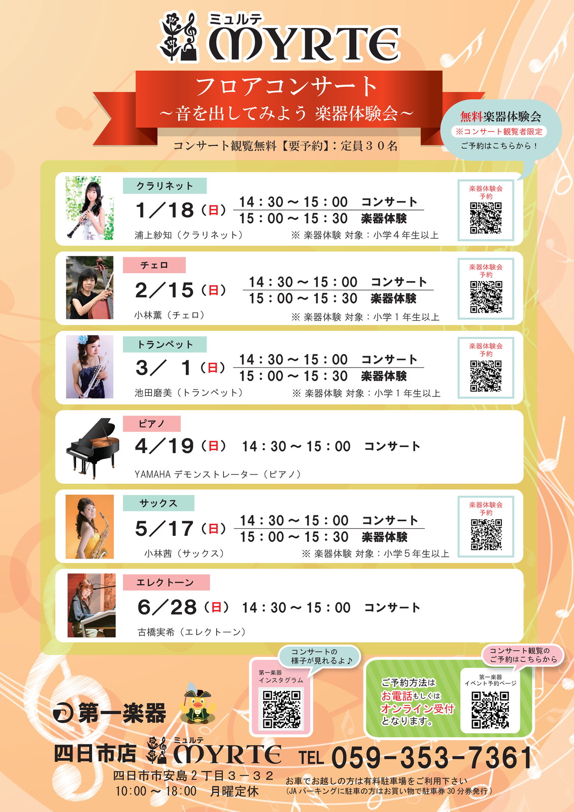 6. 1月~6月【三重】第一楽器四日市店MYRTE フロアミニコンサート
