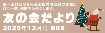 音楽指導者の皆様へ 合同発表会指導者友の会 入会のご案内第一楽器 jetグレード日程 友の会だより 第一楽器友の会の音楽指導者会員の皆様を対象に、情報をお届けします。月に1度、毎月1日に更新します。 友の会だよりはこちらからご覧下さい↓ 第一楽器友の会LINE公式アカウント 友の会だよりの内容をはじめ、様々な情報を配信しています。 是非ご登録ください。