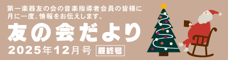 長年、第一楽器指導者友の会の皆様に向けて情報を提供してまいりました『友の会だより』ですが、この2025年12月号をもちまして配信終了とさせていただくことになりました。