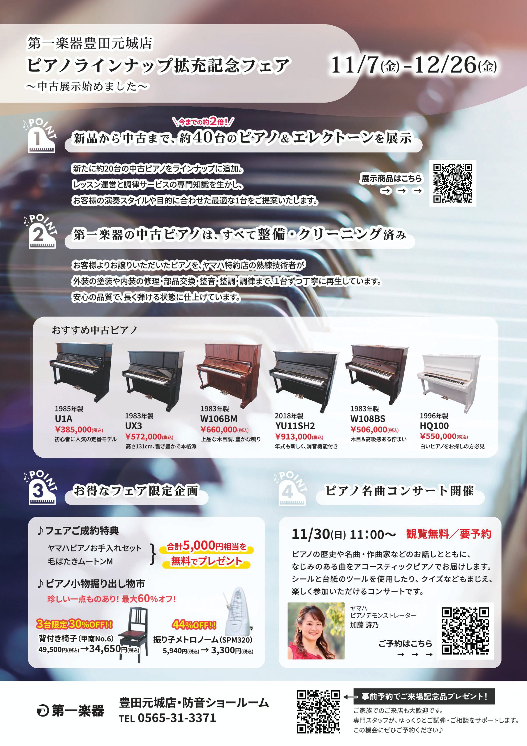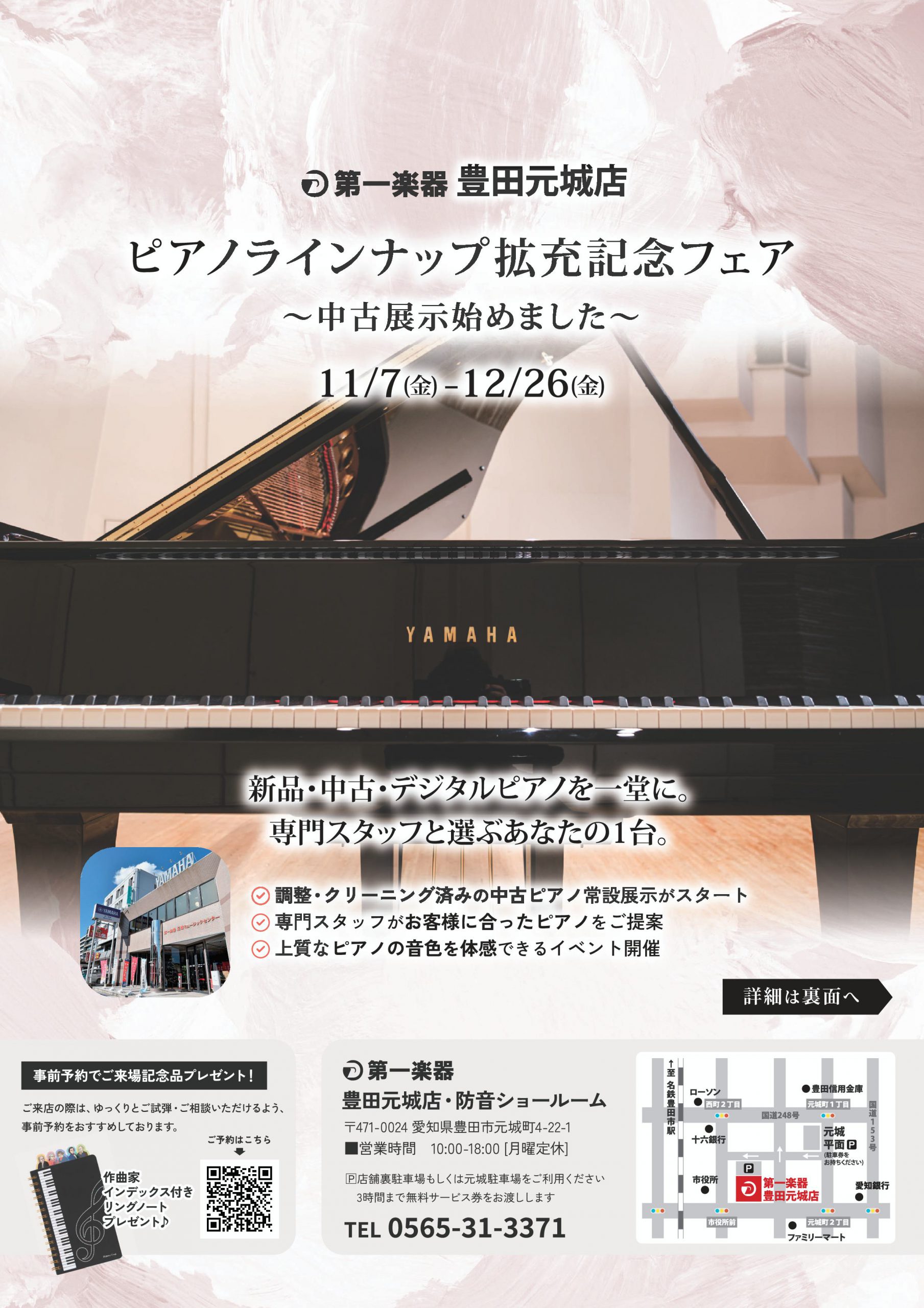 11/7(金)~12/26(金)まで【第一楽器豊田元城店】ピアノラインナップ拡充記念フェア開催