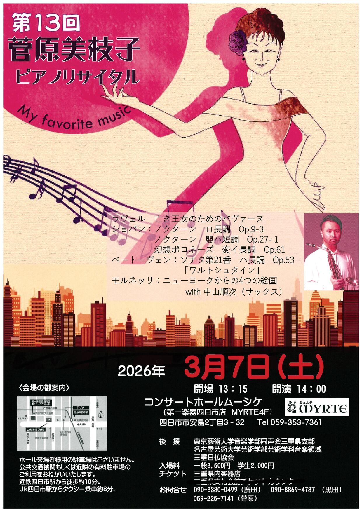 - 2025年12月13日【ムーシケイベント情報】2026/3/7(土)第13回 菅原美枝子ピアノリサイタル
